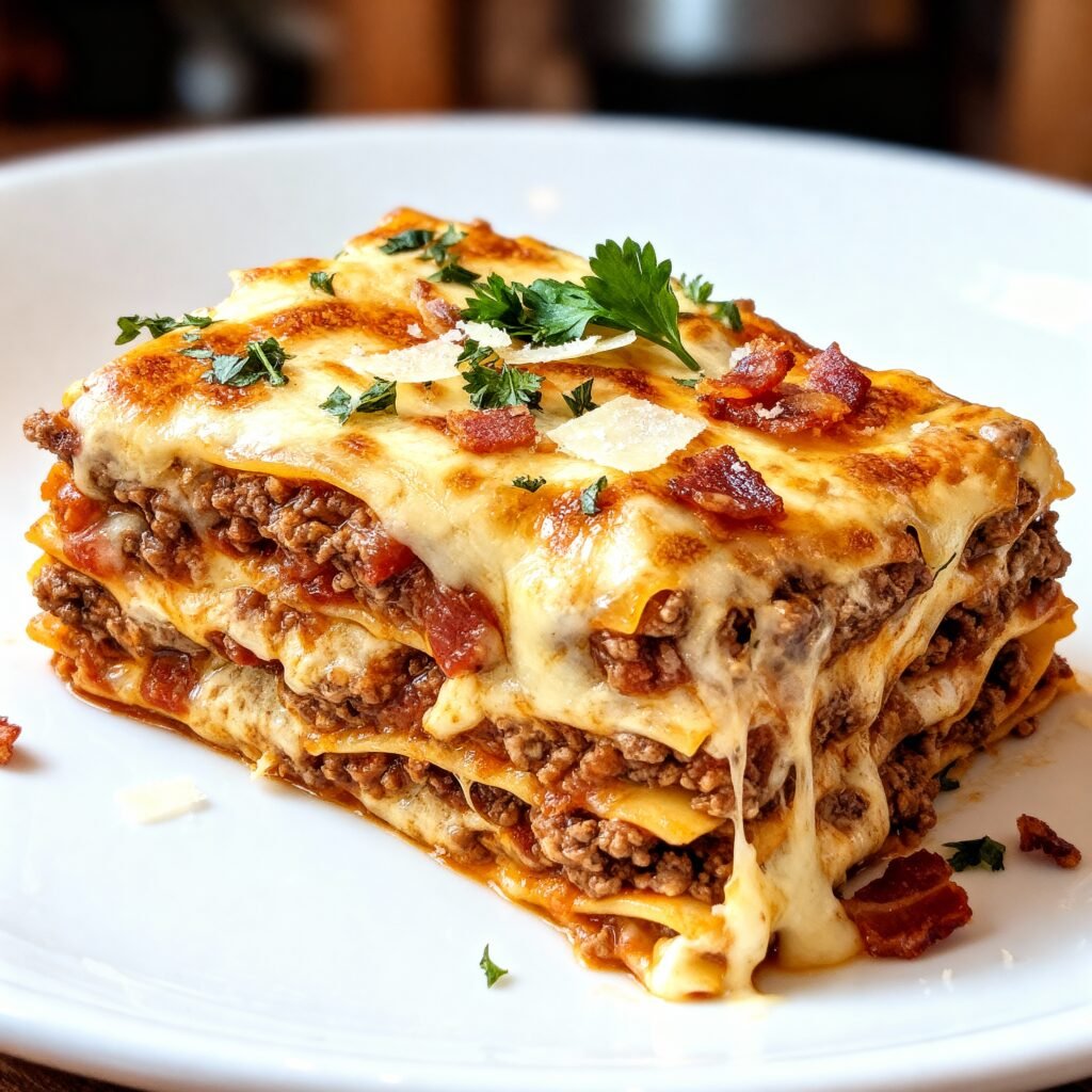 Parmesan Garlic Bacon Cheeseburger Lasagna Recipe