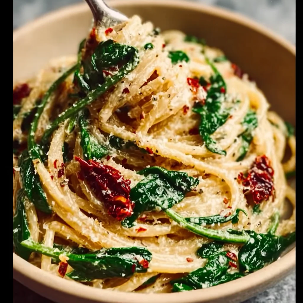 Spicy Spinach and Sun Dried Tomato Pasta Recipe