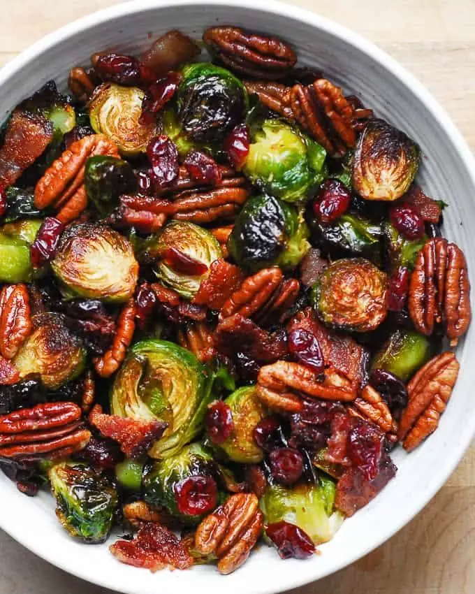 Roasted Brussels Sprouts with Bacon, Pecans, and Cranberries Recipe