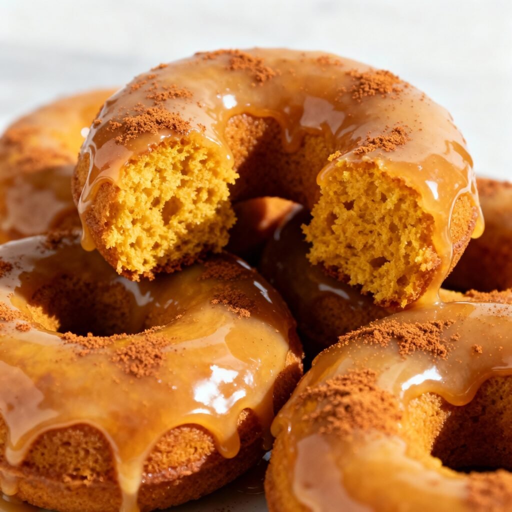 Soft, spiced pumpkin donuts topped with sweet maple glaze