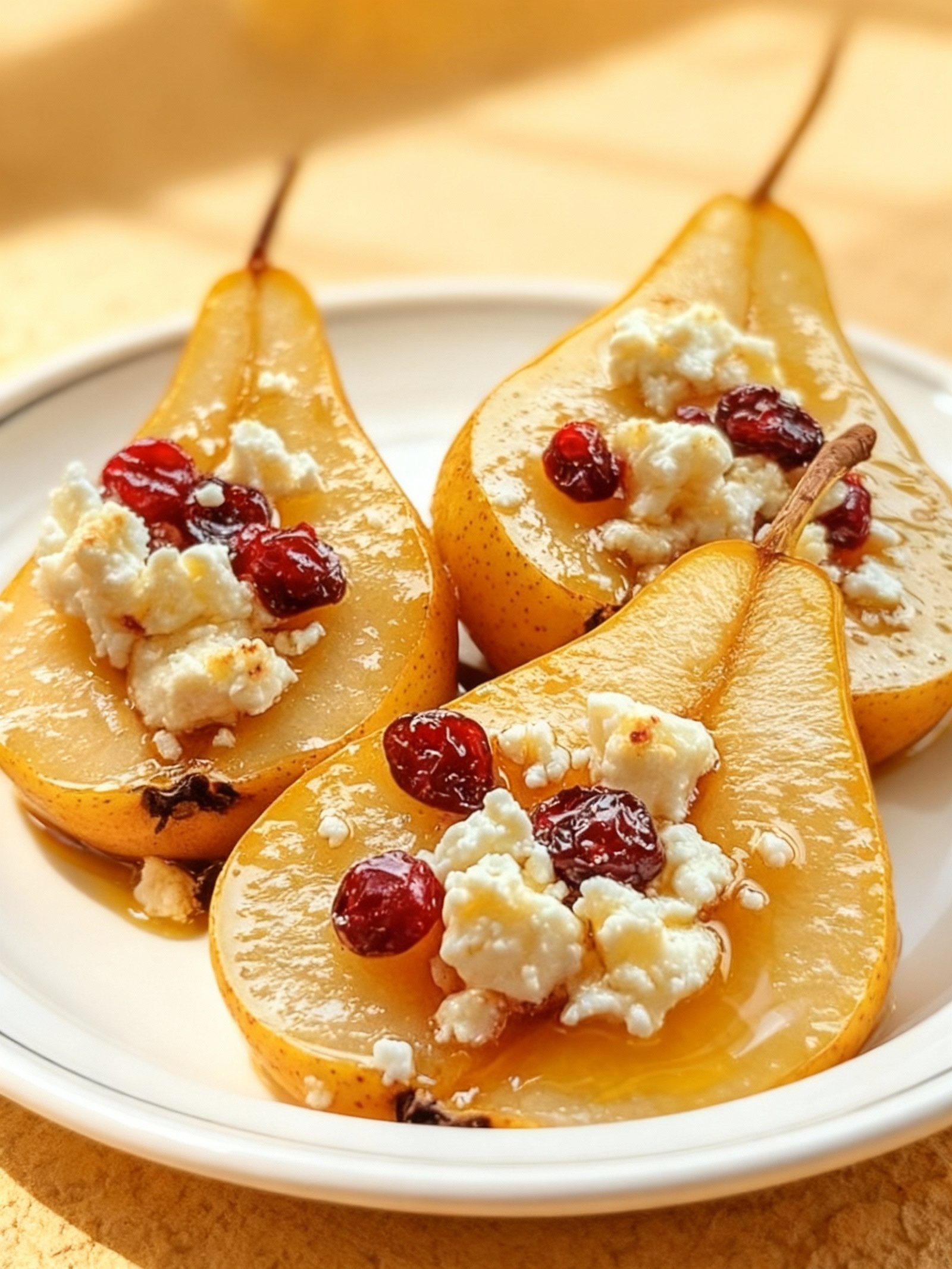 A delicious and versatile dish that can be served as an appetizer, side, or light dessert, featuring the sweetness of pears and honey, the tanginess of feta, and the tartness of cranberries.
