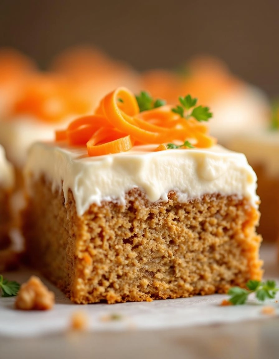 Moist and flavorful carrot cake bars with a creamy frosting, perfect for any occasion.