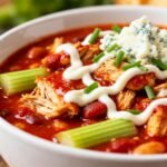 This buffalo chicken chili brings together the zesty, tangy heat of buffalo wings with comforting chili ingredients for a bold, satisfying meal that’s perfect for any gathering.
