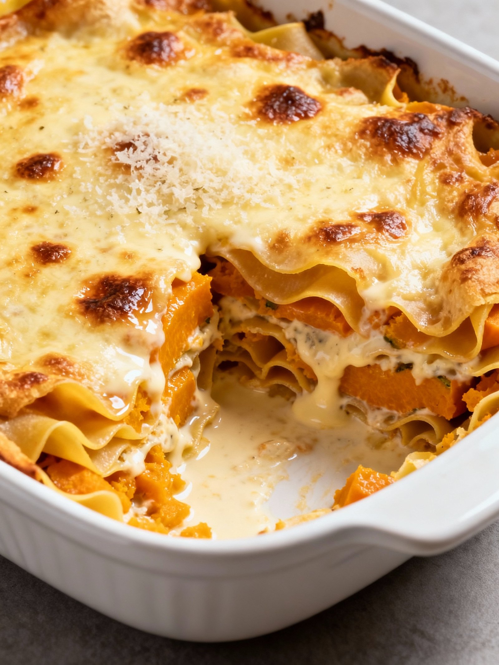 This comforting butternut squash lasagna layers sweet roasted squash, creamy cheeses, and aromatic herbs between tender pasta sheets for a rich, satisfying dish.