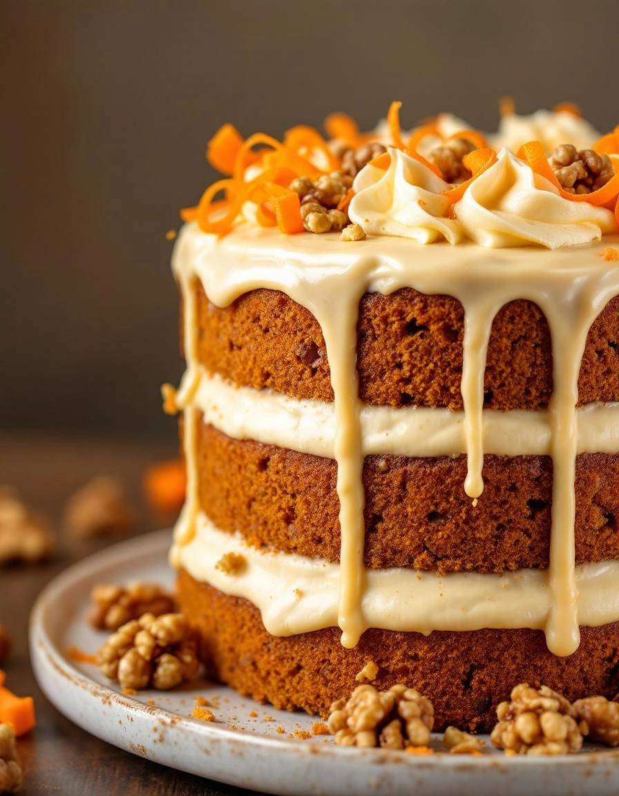 A moist and flavorful carrot cake with cream cheese frosting, perfect for any occasion.