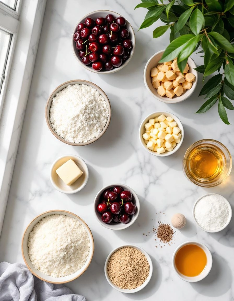 - 1 1/2 cups fresh or frozen cherries, pitted and chopped – If using frozen, no need to thaw. Their natural juices make the filling extra luscious.