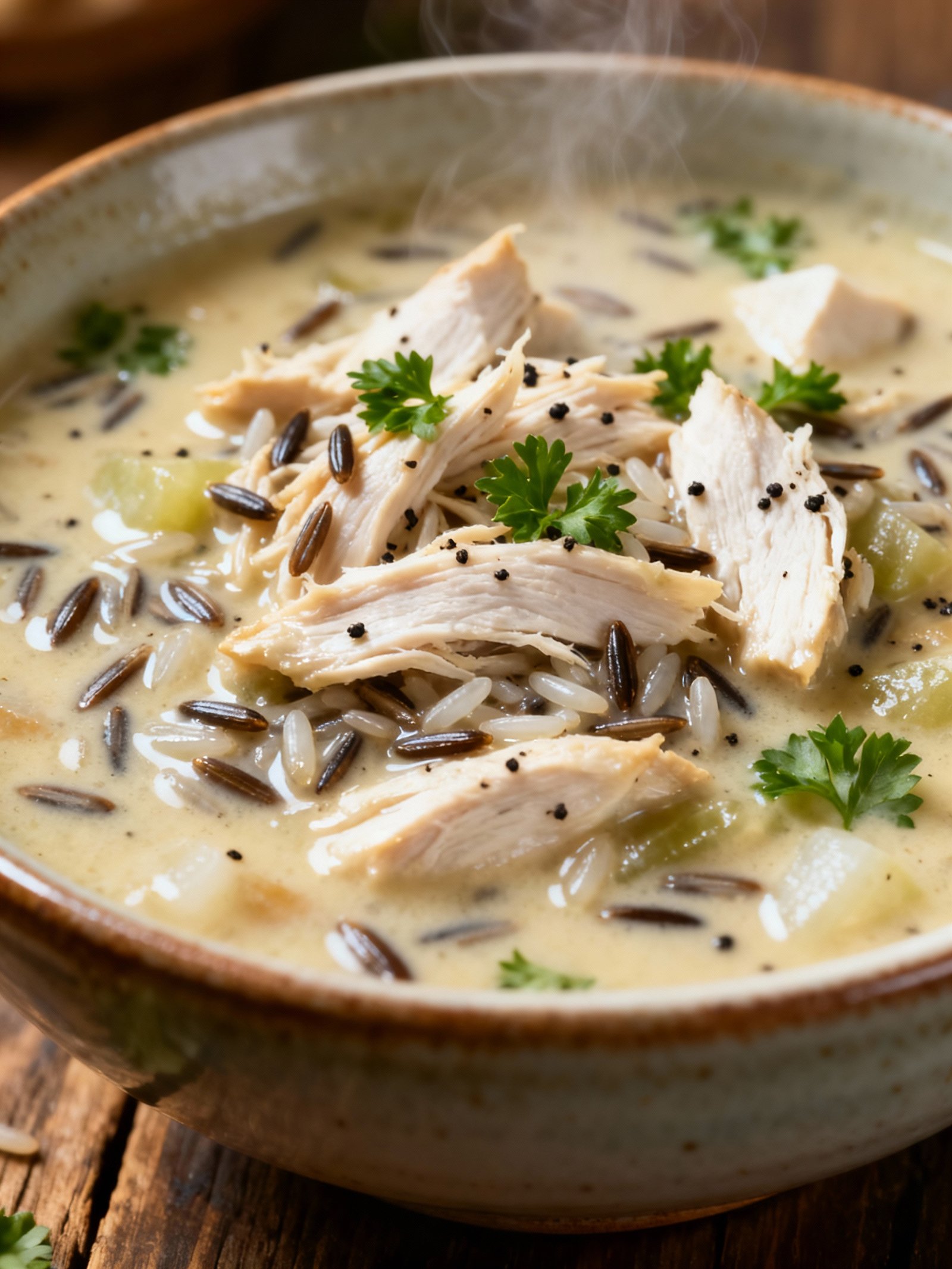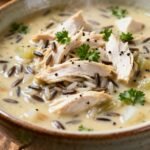 A hearty and comforting soup made with tender chicken, wild rice, vegetables, and a creamy broth, perfect for chilly days.