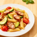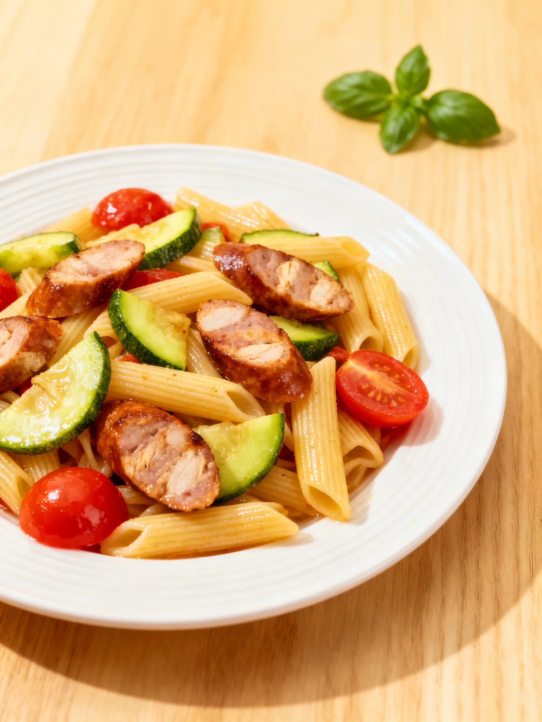 Context: This streamlined Chicken Sausages Zucchini Tomatoes Pasta is about 25% faster than traditional recipes that cook components separately. The concurrent cooking method—boiling pasta while sautéing the vegetables and sausage—makes it a perfect, efficient choice for busy weeknights.