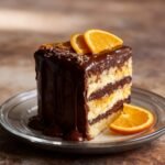 A moist, citrus-infused chocolate cake layered with decadent chocolate-orange buttercream, combining rich chocolate flavor with fresh orange zest and juice for a delightful dessert.