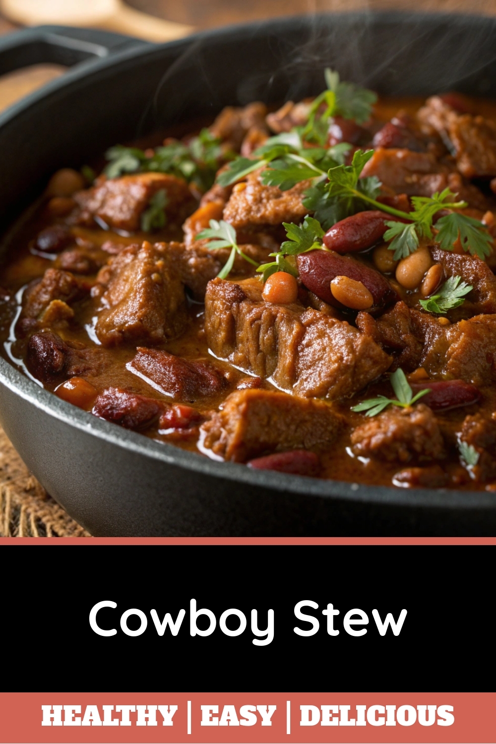 For a truly rustic presentation, serve your Cowboy Stew right from the heavy cast-iron Dutch oven it was cooked in. Alternatively, ladle generous portions into deep, wide bowls to keep it piping hot. Top each serving with a sprinkle of fresh chopped parsley or a few slices of green onion for a pop of color and freshness. Moreover, a dollop of cool sour cream or a handful of shredded cheddar cheese melts beautifully into the rich stew. This Cowboy Stew is perfect for a casual family dinner, a game day gathering, or any cozy celebration where hearty comfort food is the star.