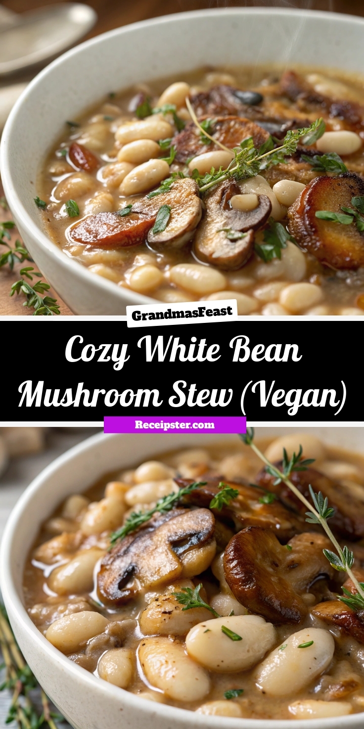 This Cozy White Bean Mushroom Stew (Vegan) delivers a deeply savory and earthy flavor profile that feels incredibly comforting. The first thing you notice is the rich, umami-packed aroma from the mushrooms and garlic as they simmer. Each spoonful offers a wonderful contrast in textures because you get the firm, meaty bite of the mushrooms alongside the creamy, soft white beans. Fresh thyme and a splash of white wine add a fragrant, bright note that cuts through the stew’s heartiness perfectly. The broth itself is luxuriously velvety and clings to every ingredient, so each bite becomes a cohesive and satisfying experience. Although it is completely plant-based, the stew tastes remarkably rich and complex, so it feels like a true indulgence. The overall sensation is one of warmth and nourishment, making this Cozy White Bean Mushroom Stew (Vegan) the ultimate bowl of comfort.