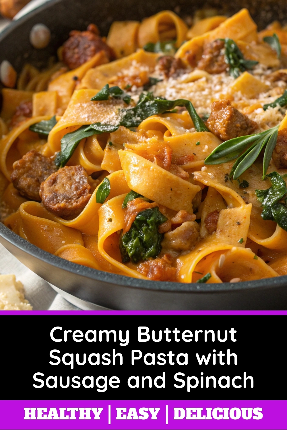 Creamy Roasted Butternut Squash Pasta with Sausage and Spinach