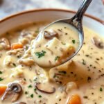 This Creamy Chicken Mushroom Wild Rice Soup is the ultimate easy weeknight dinner. It combines tender chicken, earthy mushrooms, and nutty wild rice in a rich, velvety broth. For another comforting chicken and mushroom dish, try the Creamy Chicken and Mushroom Casserole Recipe. This simple, satisfying soup comes together quickly for a perfect family meal any night of the week.