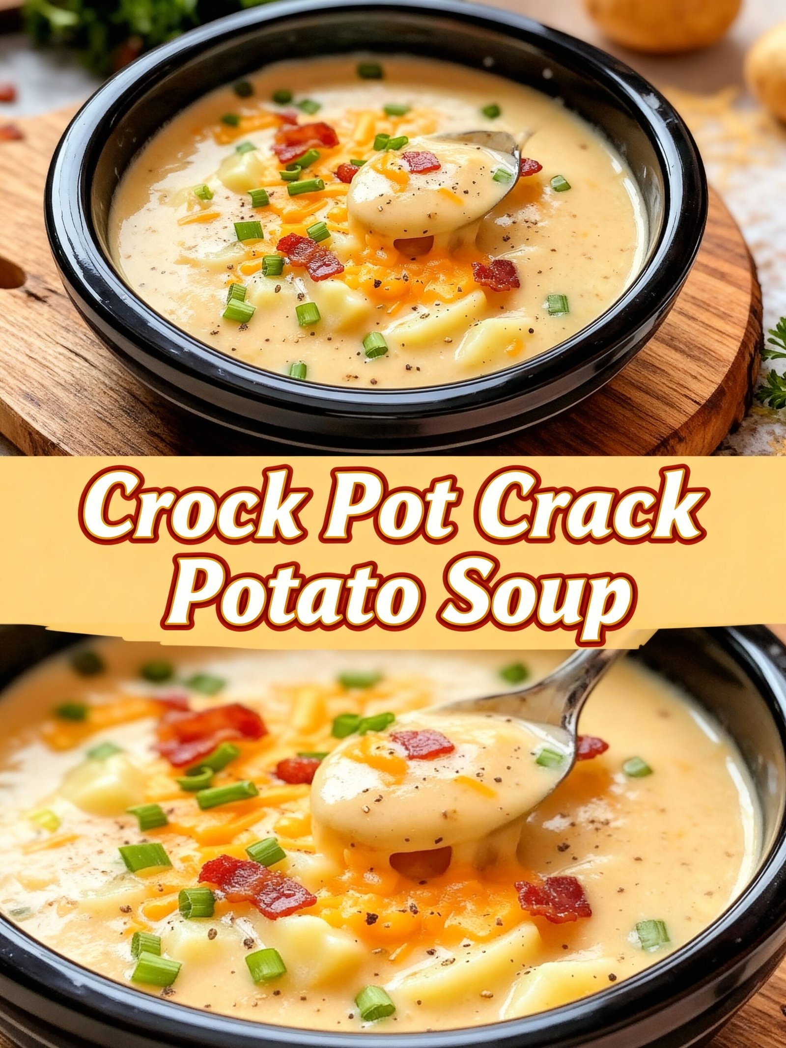 This creamy, savory Crock Pot Crack Potato Soup delivers the ultimate comfort with its rich combination of potatoes, ham, bacon, and melted cheddar cheese—all simmered to perfection in your slow cooker.