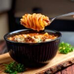 This comforting Crockpot Pasta Fagioli fills your kitchen with the rich aroma of simmering tomatoes, savory beef, and aromatic herbs as it slowly cooks to perfection.