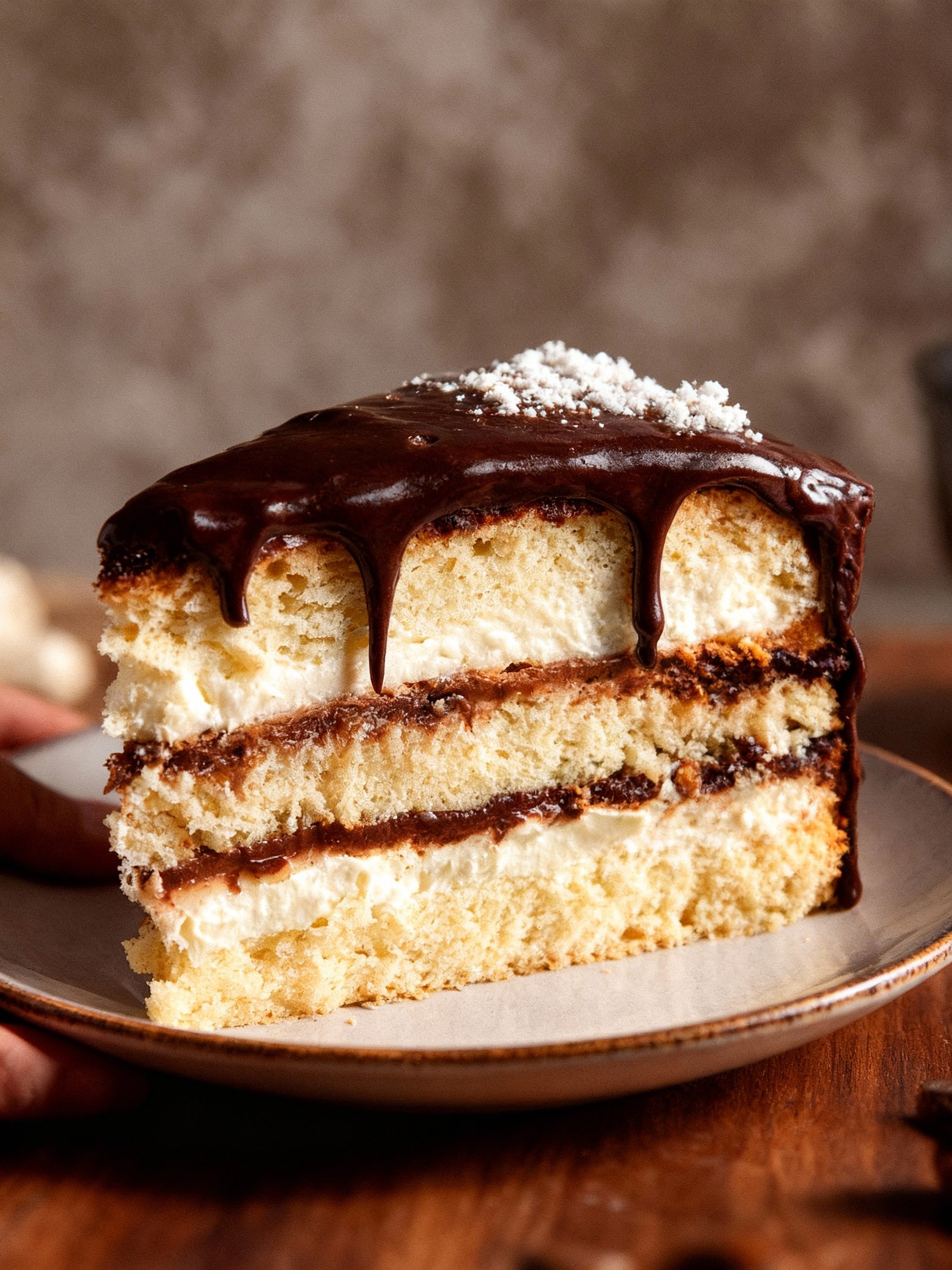 PrintDecadent Cream-Filled Cake with Chocolate Ganache