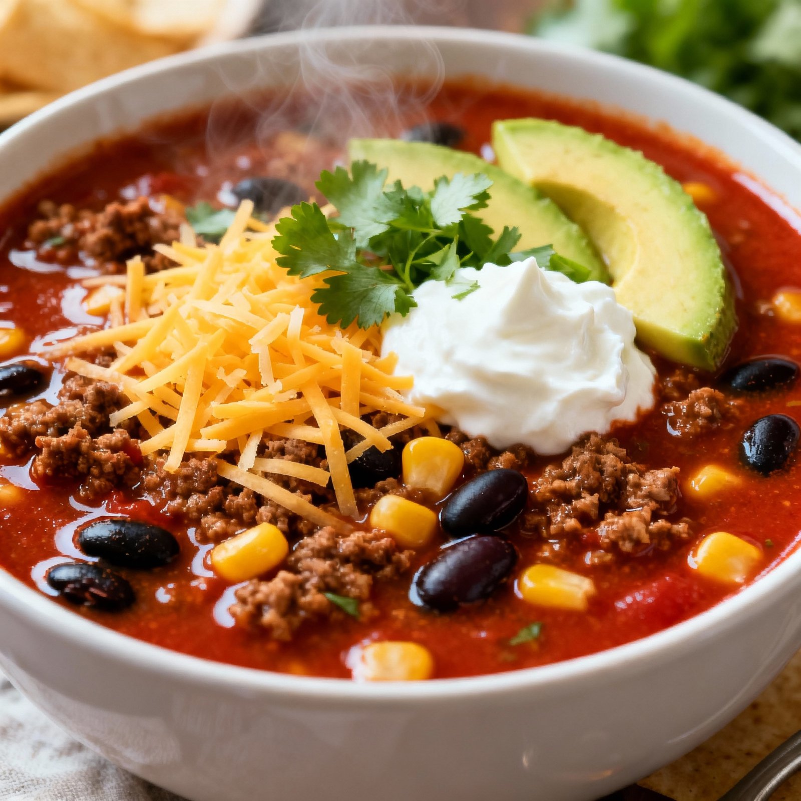 Context: This Easy Enchiladas Ground Beef Soup comes together about 30% faster than similar recipes, making it a perfect weeknight dinner solution.