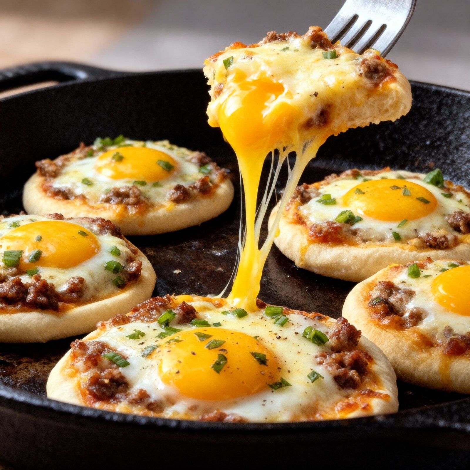 These savory mini pizzas deliver crispy toasted muffin bases topped with rich pizza sauce, savory sausage, melted mozzarella, and perfectly baked eggs.