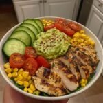 - This bowl makes an excellent high-protein lunch prep. Store the grilled chicken, chopped veggies, and avocado sauce separately in airtight containers, then assemble just before eating to keep everything fresh.
