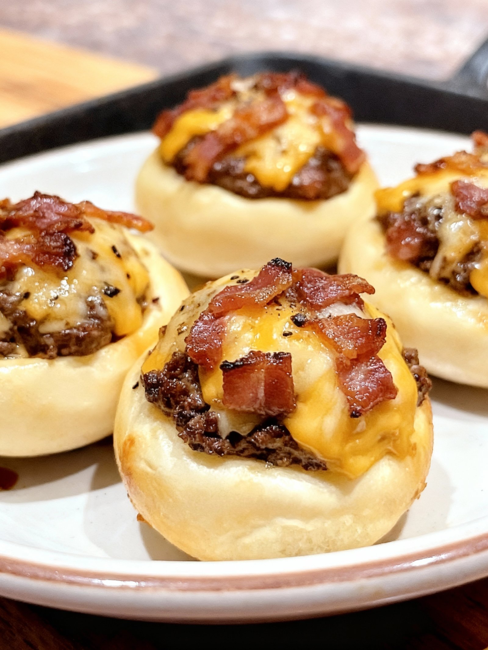 Flavor-packed bites of seasoned ground beef, cheddar, mozzarella, and Parmesan, all wrapped in golden biscuit dough and baked to perfection.