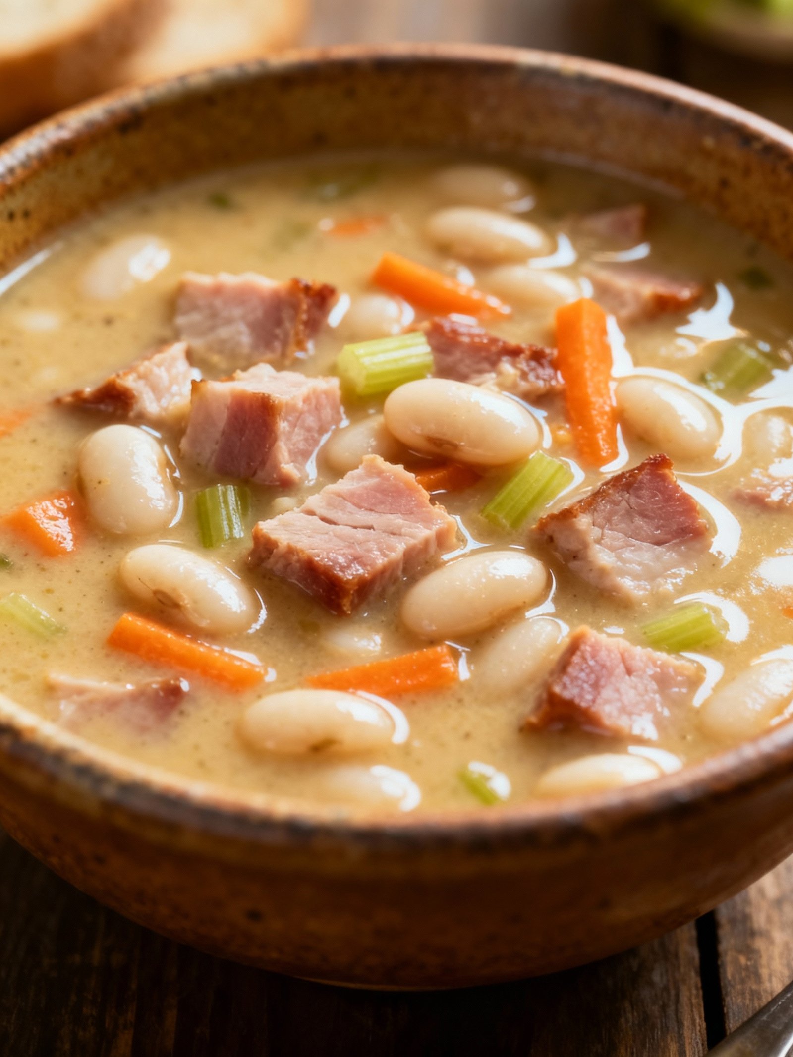 Context: This Ham and Bean Soup recipe is about 20% faster than similar recipes that require longer soaking and simmering times.