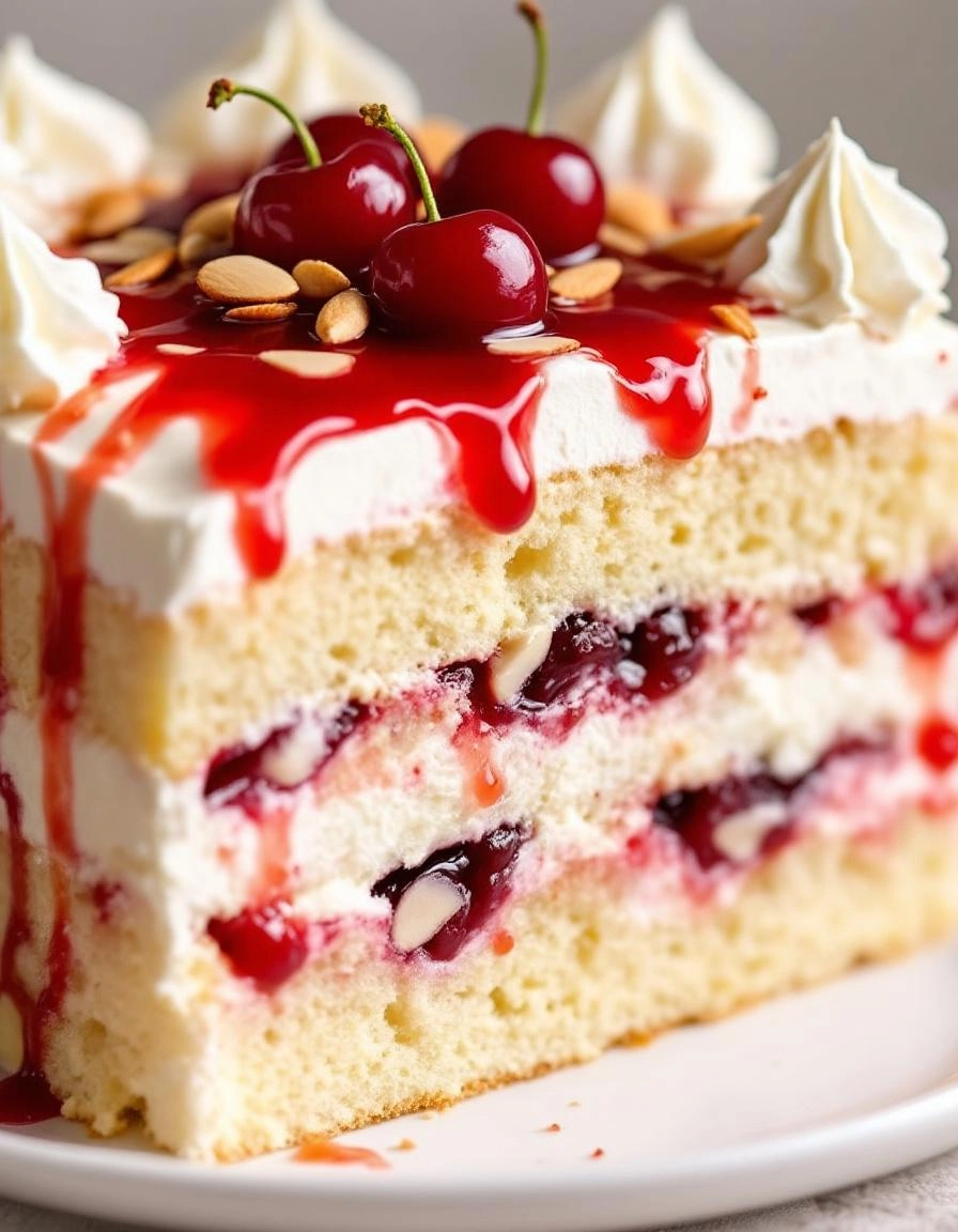 e next steps—where we’ll add the cherries, whipped cream, and those glorious toasted almonds for the finishing touch!Best Heaven on Earth Cake – Easy Dessert Recipe