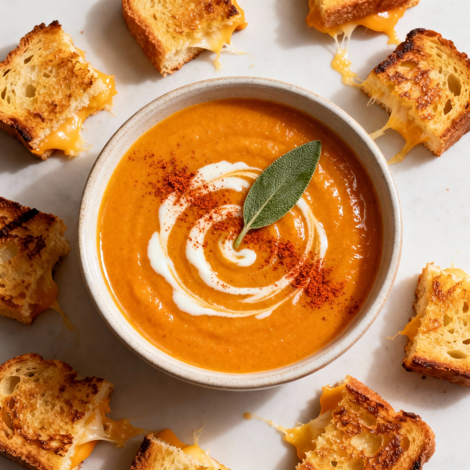 This recipe delivers a velvety, spiced Homemade Pumpkin Soup And Grilled Cheese Croutons in under an hour. The genius twist—crispy, golden grilled cheese sandwiches cubed as croutons—adds a delightful textural contrast and rich, savory flavor that elevates the entire dish from simple to spectacular.