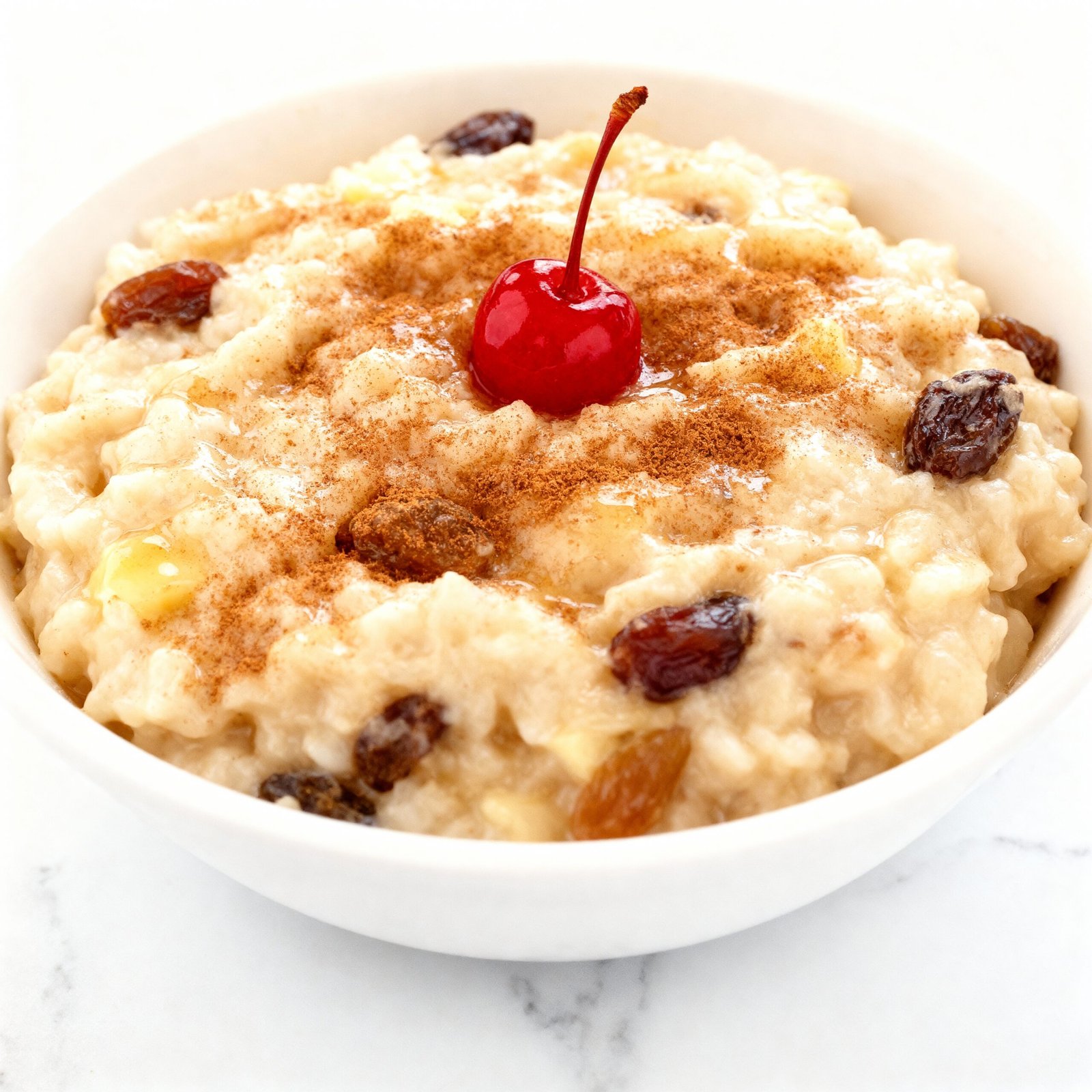 - Remove from heat, stir in butter, and serve warm or chilled. Garnish with ground cinnamon and maraschino cherries if desired.