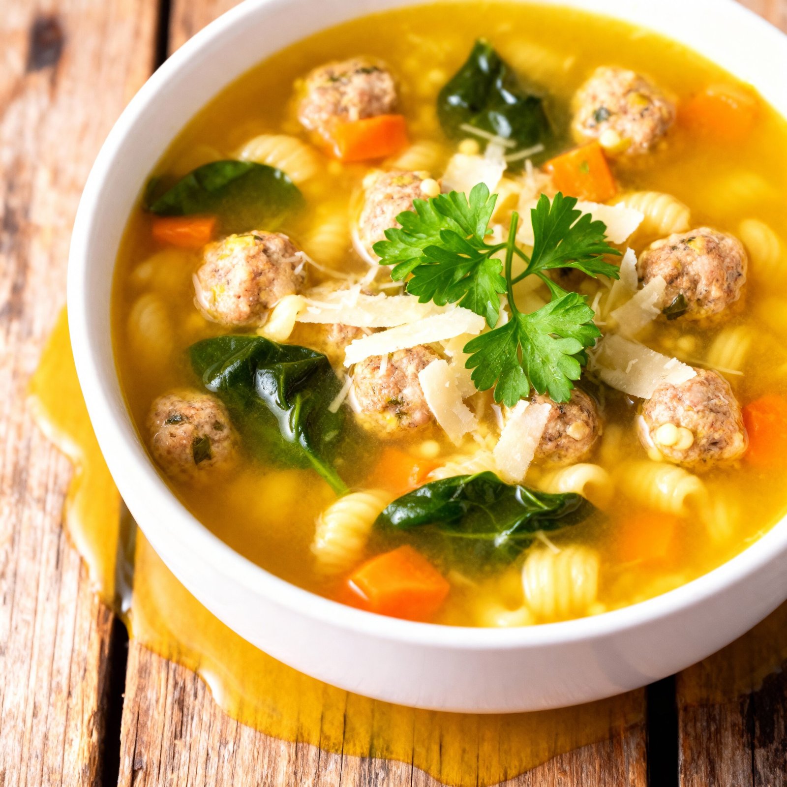 - Mistake: Oversalting the soup before tasting. Fix: Remember that both the broth and the cheese add salt; season the meatballs and soup in stages, tasting as you go.