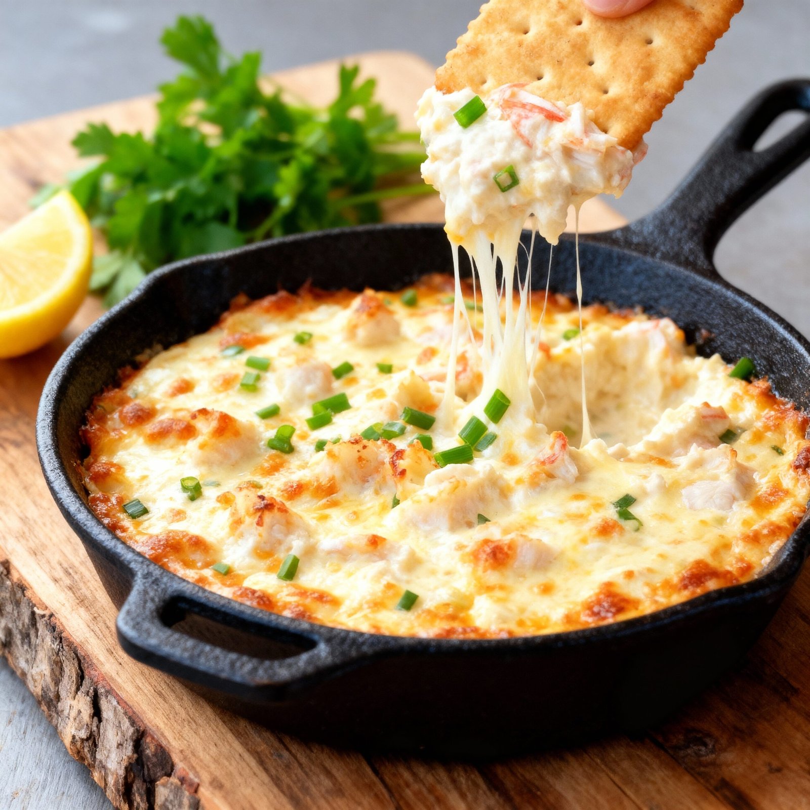 A creamy, cheesy crab dip featuring cream cheese, mayonnaise, sour cream, cheddar cheese, lump crab meat, and a blend of spices, baked until golden and bubbly. Perfect as a warm appetizer served with crackers, baguette slices, or tortilla chips.