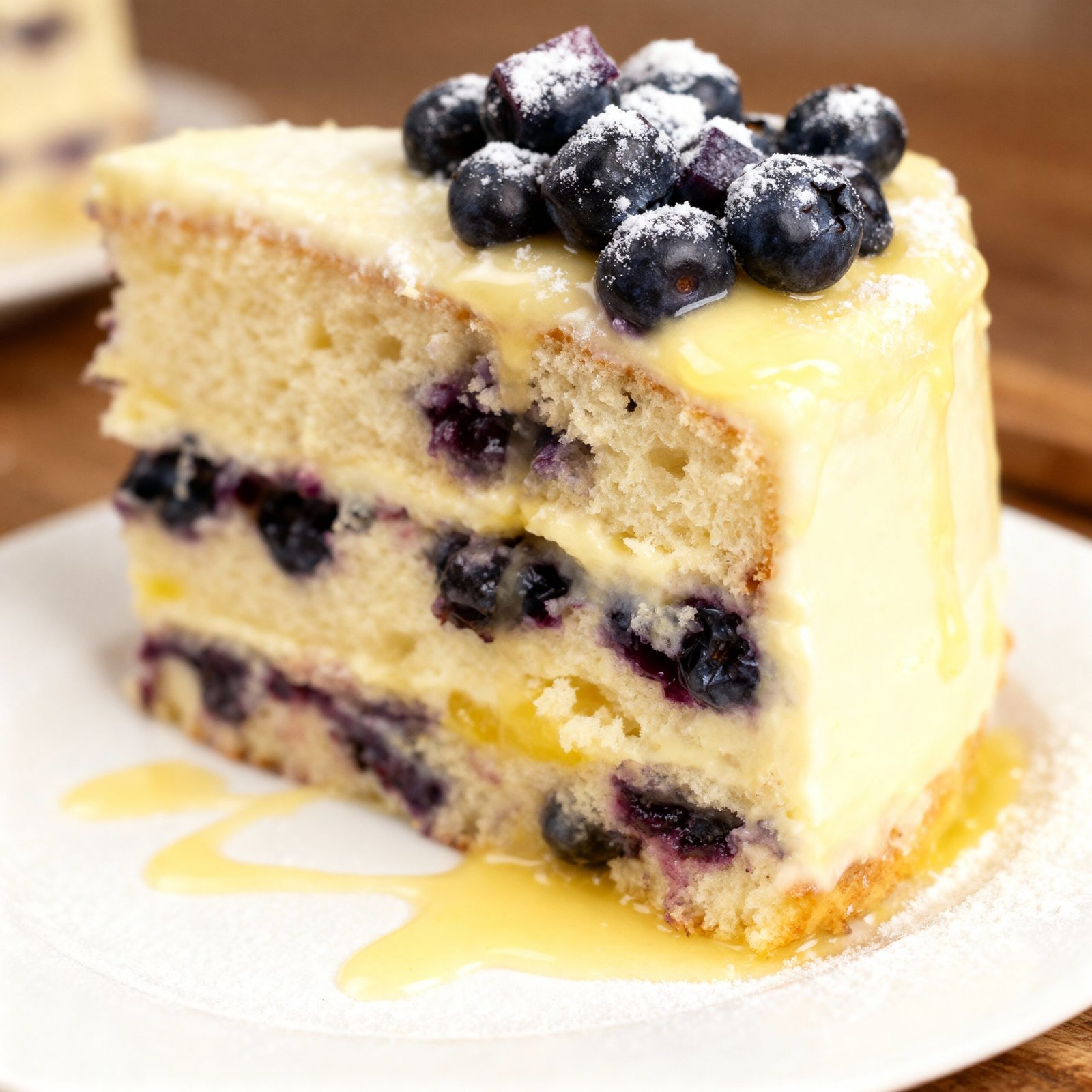 A moist and flavorful Lemon Blueberry Cake made with fresh or frozen blueberries and a bright lemon glaze, perfect for a refreshing dessert.