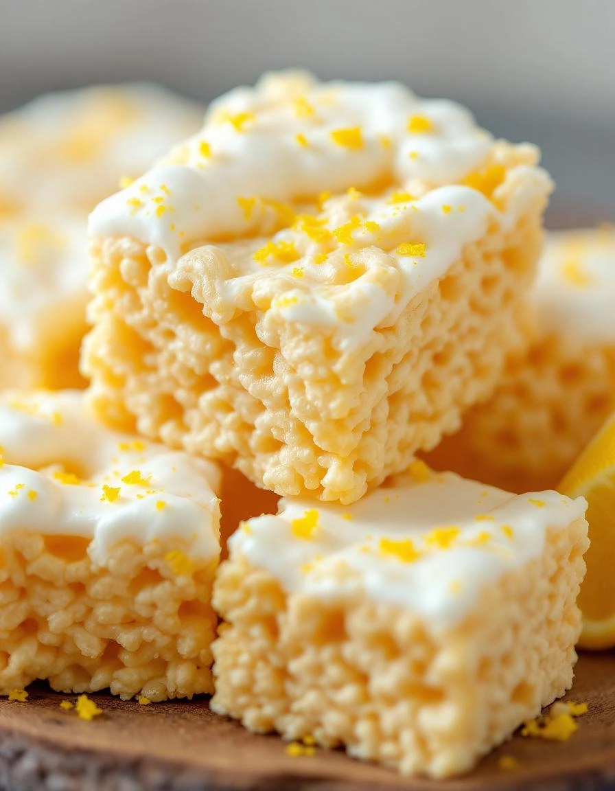 A zesty twist on the classic Rice Krispie Treats with a refreshing lemon flavor.