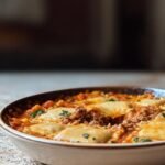 This cheesy baked ravioli casserole delivers layers of savory ground beef, rich tomato sauce, and three types of melty cheese, all topped with a golden, buttery breadcrumb crust.