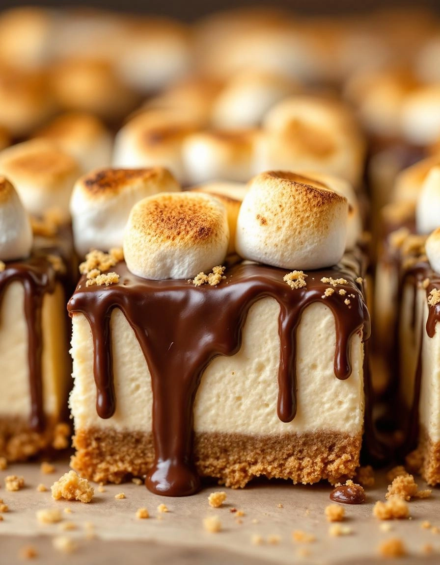 A decadent dessert combining the classic flavors of smores with creamy cheesecake in an easy no-bake bar form.