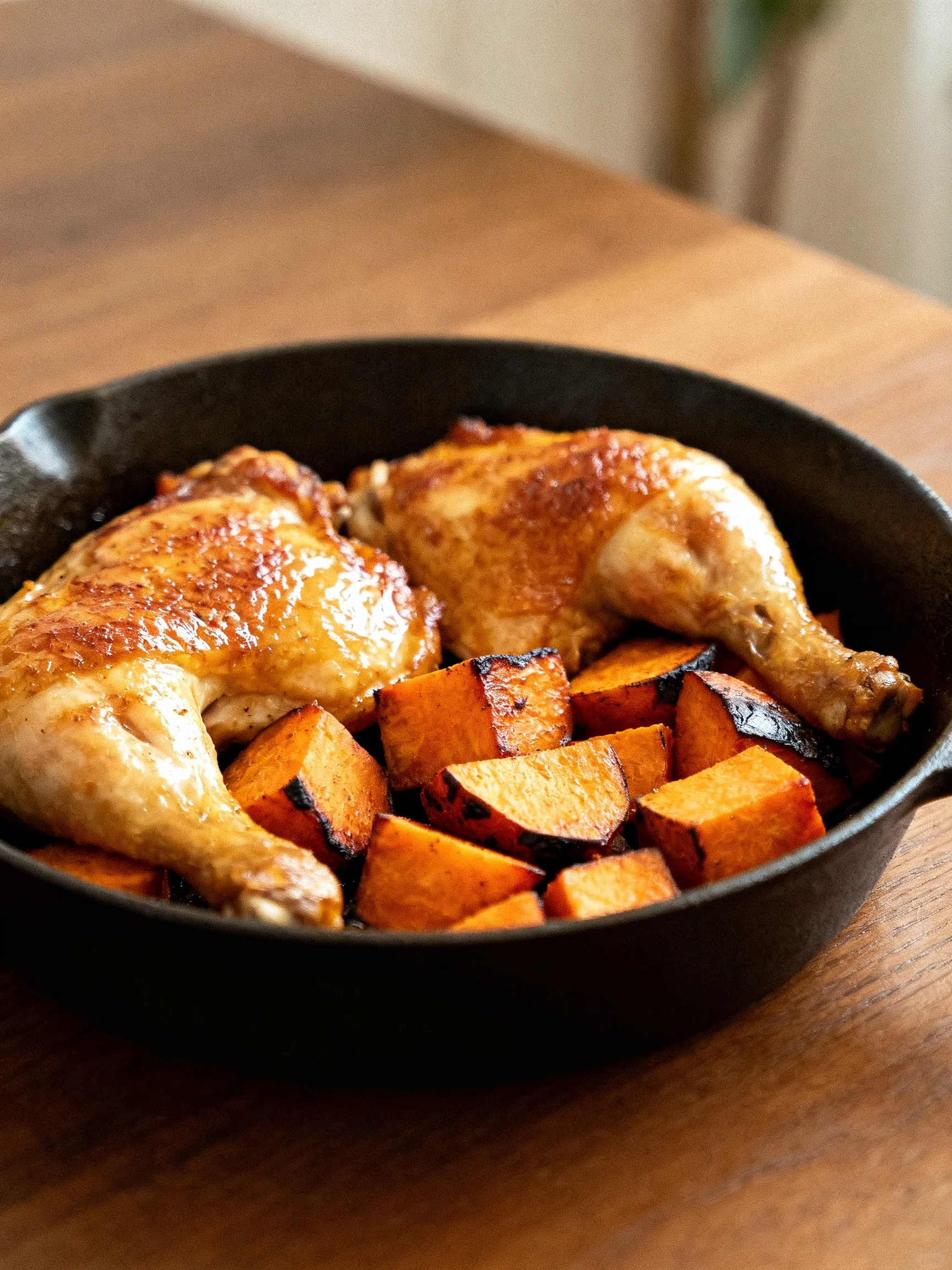 • Reheat: Warm in a 350°F (175°C) oven for 10–12 minutes, or until the chicken reaches an internal temperature of 165°F (74°C). The microwave works in a pinch (90 seconds on medium), but the oven restores the crispy edges that made this dish shine. Add a splash of broth or water if the sweet potatoes look dry.
