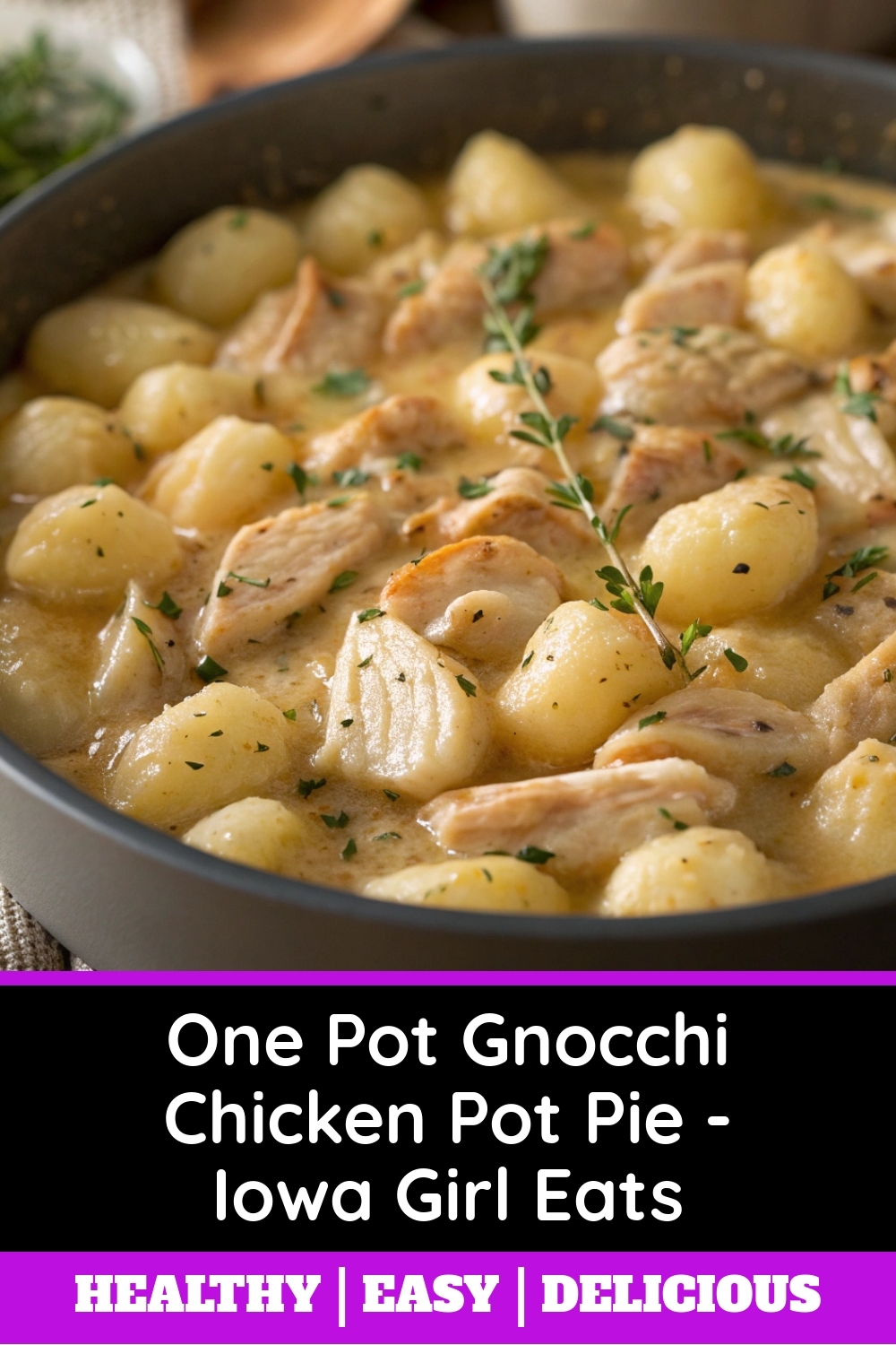 The One Pot Gnocchi Chicken Pot Pie – Iowa Girl Eats delivers a deeply comforting and savory experience from the very first bite. You are immediately greeted by the rich, creamy sauce, which is fragrant with the earthy notes of thyme and the subtle sweetness of sautéed onions and carrots. Tender, juicy chunks of chicken mingle with soft, chewy potato gnocchi, creating a wonderfully satisfying texture in every spoonful. Each soft, airy gnocchi pillow soaks up the velvety sauce beautifully, while the peas offer a delightful pop of freshness that cuts through the richness. The entire dish is blanketed by a golden, crisp pastry crust, providing a fantastic buttery and flaky contrast to the creamy filling beneath. This combination of textures and the deeply savory, herbaceous flavor profile makes the One Pot Gnocchi Chicken Pot Pie – Iowa Girl Eats a truly unforgettable and cozy meal.