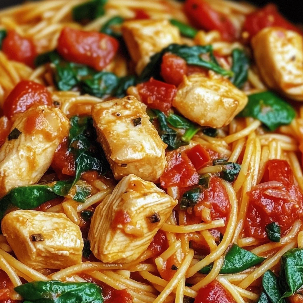 PrintTomato Spinach Chicken Spaghetti