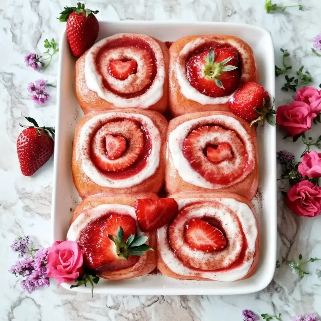 Context: This recipe for Pink Cinnamon Rolls is about 20% faster than many traditional recipes, thanks to a simplified strawberry filling that skips extra prep steps.