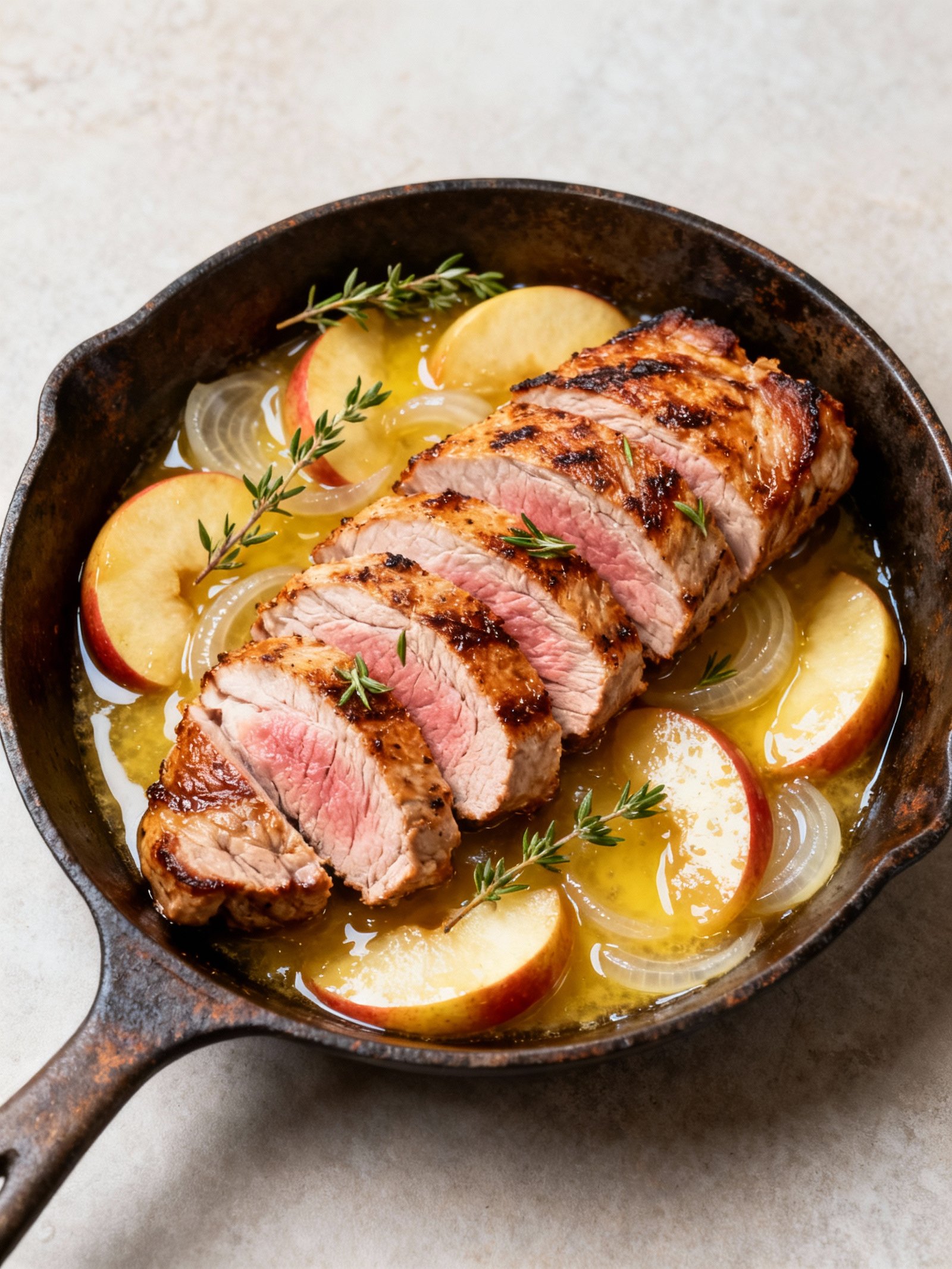 This elegant dish combines juicy, herb-rubbed pork with sweet, caramelized apples for a perfect balance of savory and sweet flavors that will fill your kitchen with an irresistible aroma.