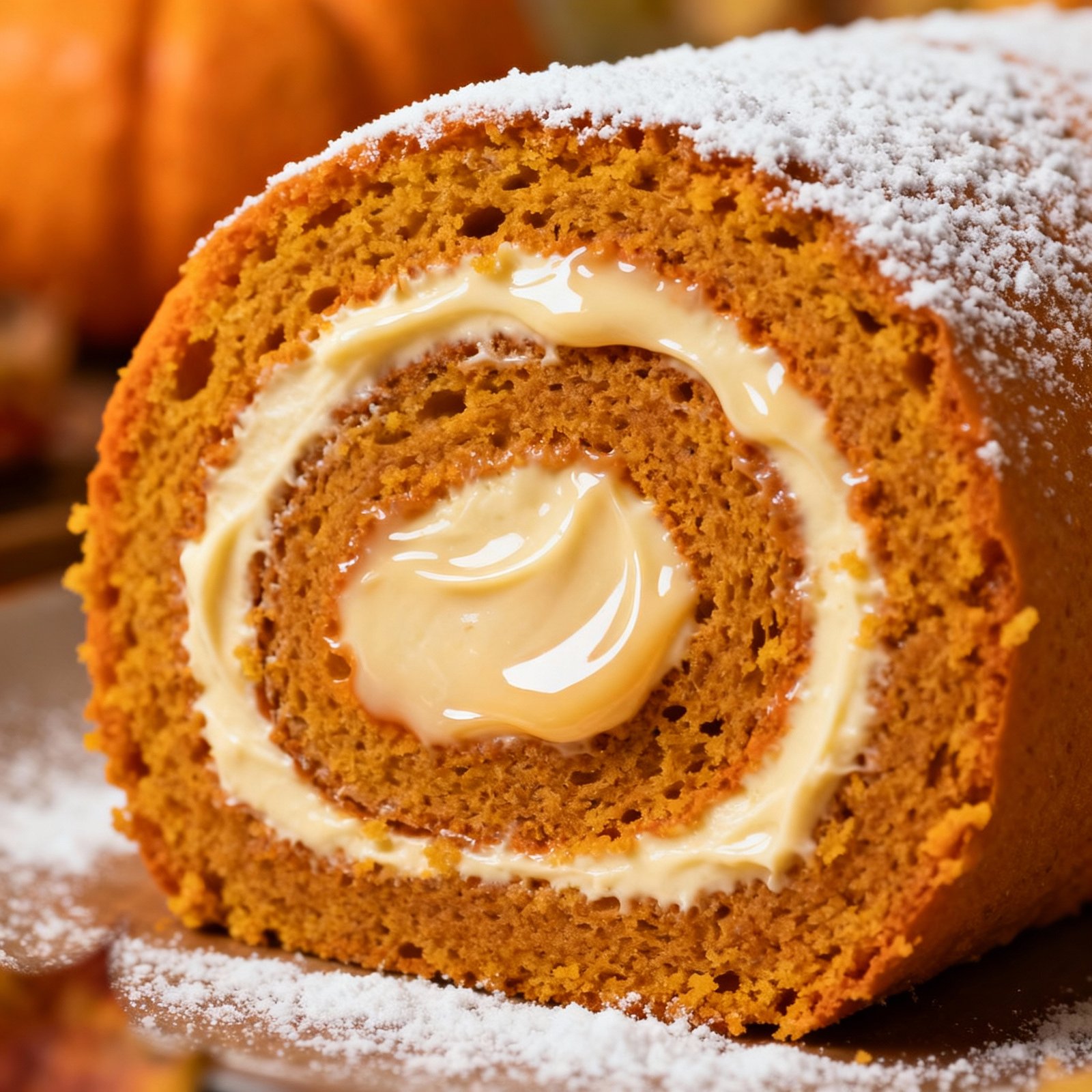 A moist and delicious sweet-and-spicy pumpkin roll filled with silky-smooth cream cheese frosting, perfect for fall celebrations like Halloween and Thanksgiving.