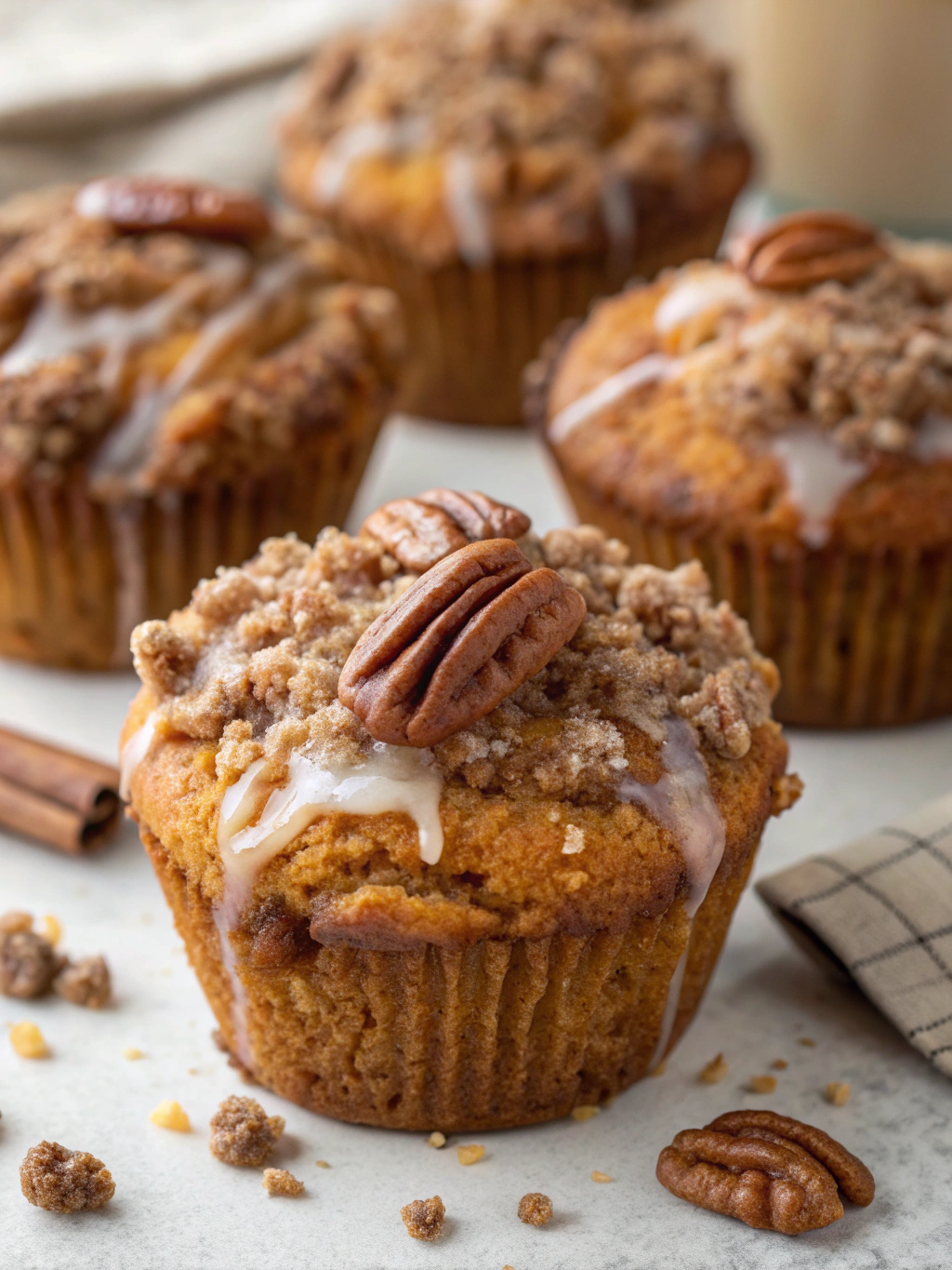 Moist and flavorful pumpkin muffins topped with a sweet, crunchy streusel topping, perfect for autumn mornings or holiday gatherings.