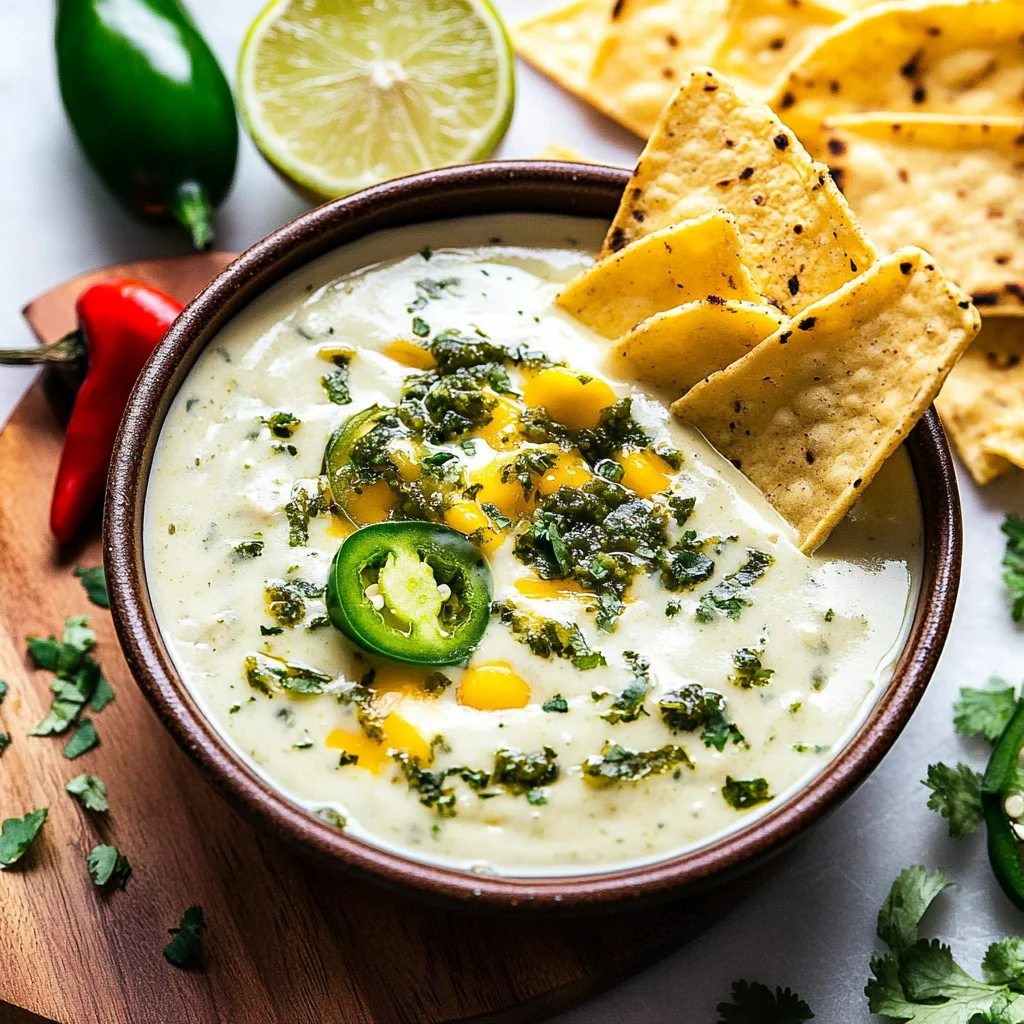 This creamy, tangy dip combines the smoky char of roasted poblanos with the bright heat of salsa verde, all melted into a luxuriously smooth cheese base perfect for dipping.