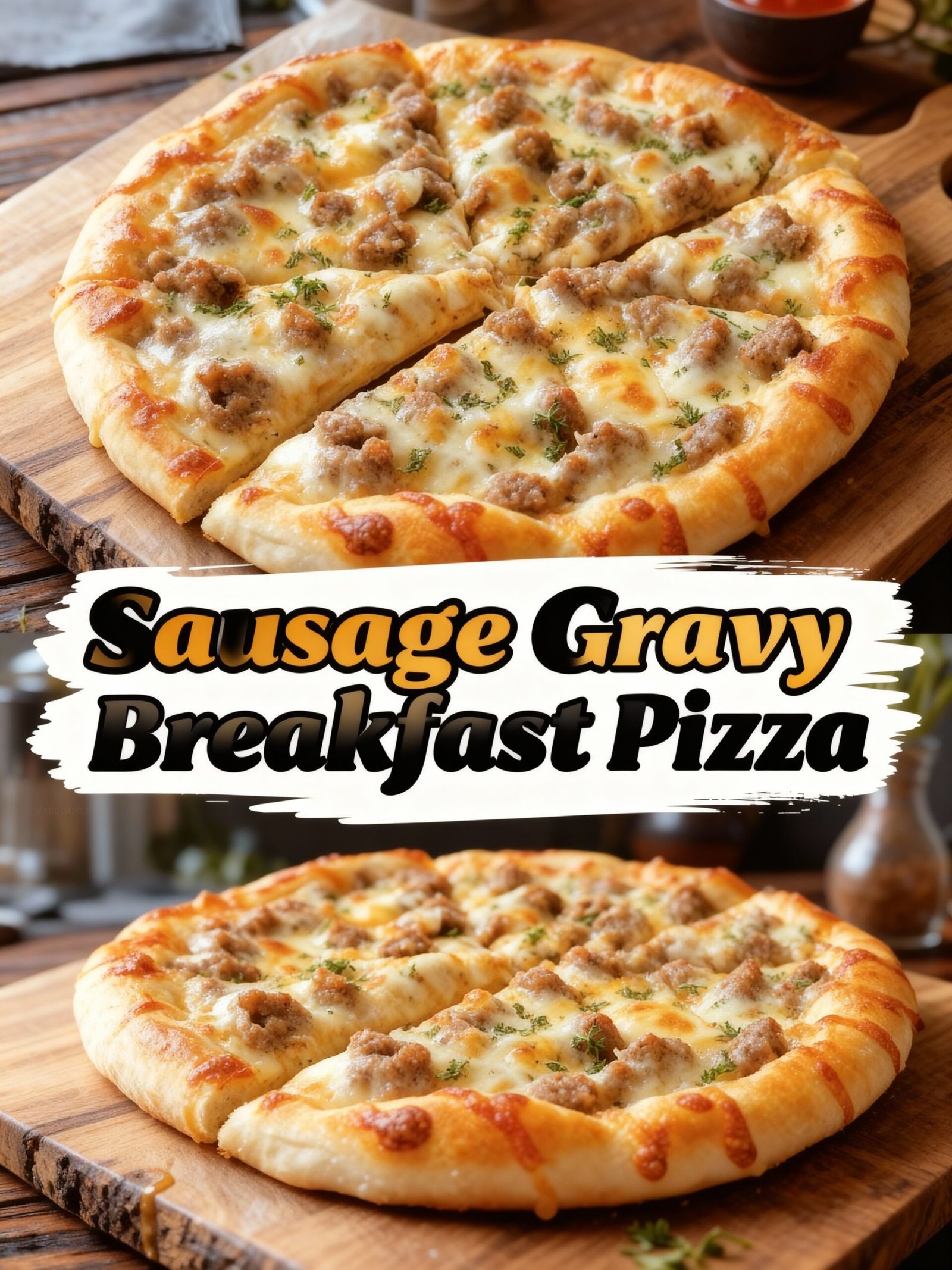 Imagine waking up to the savory aroma of sizzling sausage and creamy gravy baked right into a golden pizza crust, topped with bubbling mozzarella cheese.