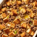 This classic Sausage Stuffing recipe delivers the perfect savory side dish for holiday meals and family dinners. Packed with flavorful sausage, aromatic herbs, and soft bread cubes, it’s a comforting staple that pairs beautifully with roasted meats. For another delicious side option, try this Cornbread Casserole Recipe Easy. Simple to prepare and always crowd-pleasing, this stuffing will become a regular on your menu.
