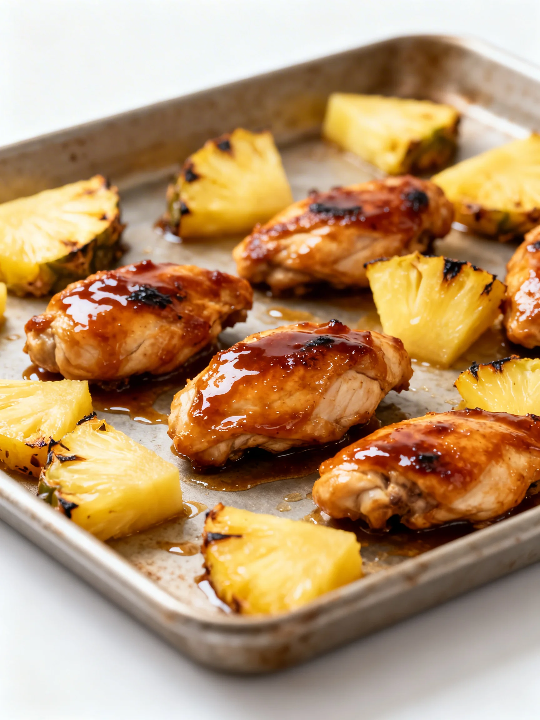 Place the sheet pan in the preheated oven and roast for 20-25 minutes. The chicken is done when it reaches an internal temperature of 165°F and the pineapple edges are golden brown. This method reduces active cook time by about 25% compared to a multi-pan approach.