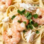 PrintShrimp and Crab Alfredo | Creamy Seafood Pasta Recipe