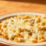 This comforting beef and noodle bake combines savory ranch-seasoned ground beef with creamy cottage cheese and tangy tomato sauce for a rich, satisfying meal that’s perfect for family dinners.
