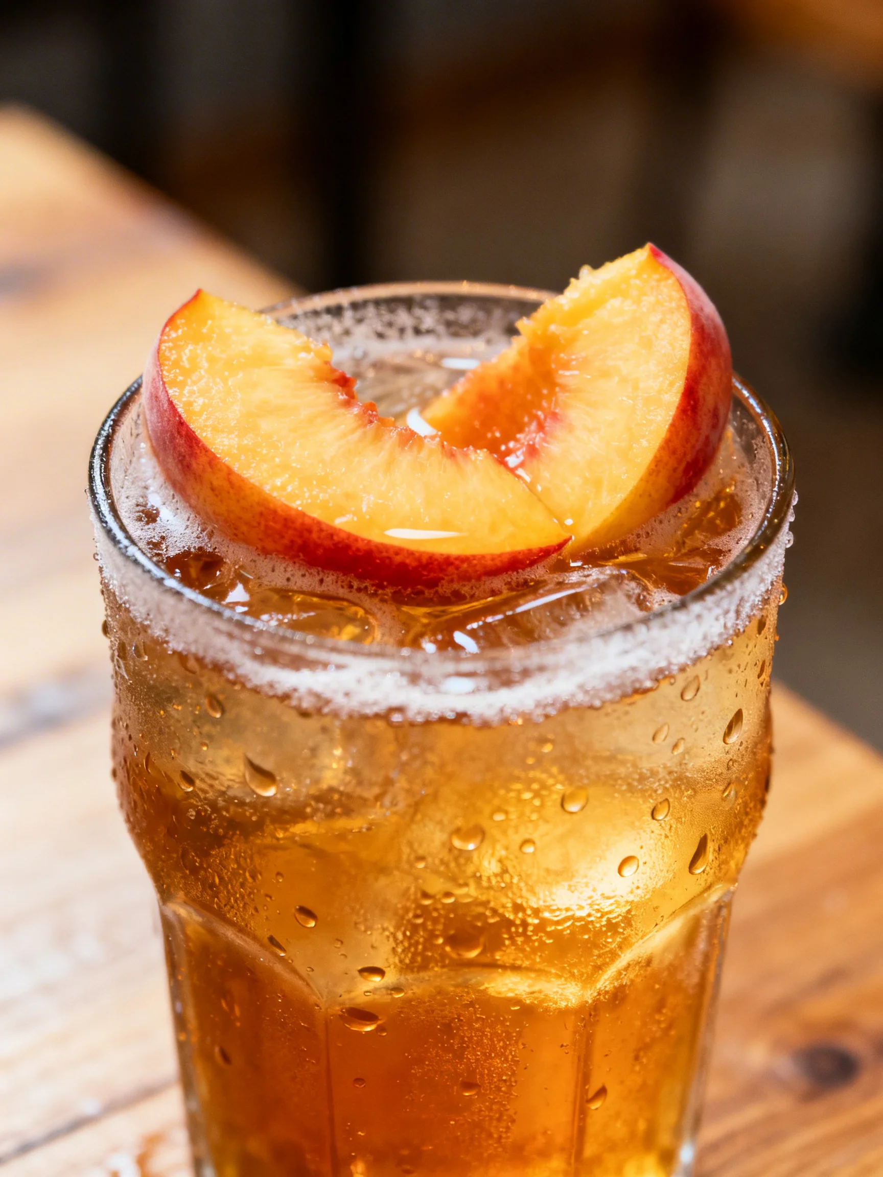 Just before serving, thinly slice or dice the two reserved fresh peaches. Fill glasses with ice, pour in the chilled Southern Peach Tea, and garnish with the fresh peach pieces. This adds a bright, fresh texture and visual appeal that makes every sip special.