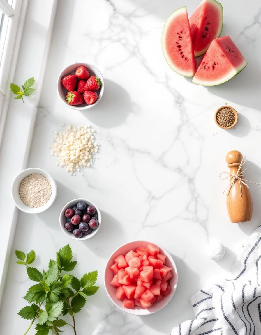 - 2 cups fresh watermelon, cubed – The star of the show! Watermelon brings natural sweetness and a hydrating juiciness. Pro tip: If your watermelon isn’t super ripe, add a drizzle of honey to balance the flavor.