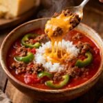 This comforting Stuffed Pepper Soup comes together with simple ingredients that create a rich, savory aroma and hearty texture, combining tender ground beef, vibrant bell peppers, and fluffy rice in a robust tomato broth.
